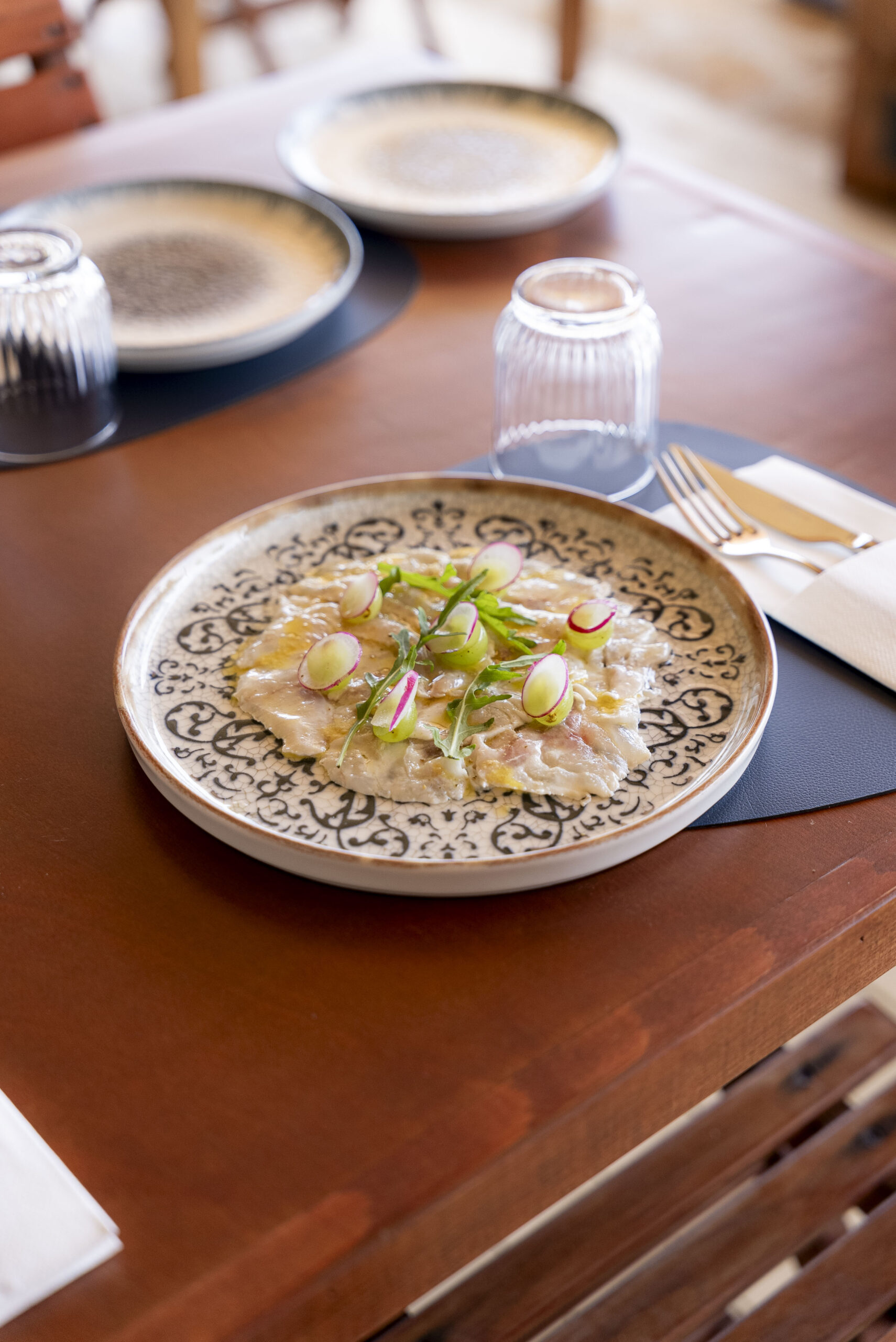 Sea bass carpaccio with grapes